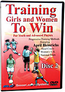 For youth and advanced players - Progressive training methodsFeaturing April Heinrichs, Former Head Coach - Women's US National teamIn the world of women's soccer, no one can match the combined experience of April Heinrichs as a player and coach. 'Training Girls and Women to Win' is a 3-part series in which girls and women soccer players and coaches, under the direction of Coach Heinrichs, demonstrate a series of skills and drills for both youth and advanced players. Each DVD includes sections on the technical, tactical, physical, and psycological aspects of soccer, as well as exciting Women's World Cup footage featuring the top U.S. women players in action. 73 minutes.Disc 2:Technical-Youth Heading-Advanced Heading-Youth Dribbling-Advanced DribblingTactical-Youth 1v1 Defending-Advanced 1v1 Defending-Youth 1v2 Defending-Advanced 1v2 DefendingPhysical-FitnessPsychological-Mental ToughnessThis video is available in DVD format only.